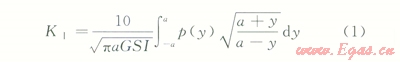 對(duì)于長(zhǎng)度較小的裂紋,可看做是無(wú)限體平面問(wèn)題,在無(wú)限遠(yuǎn)處有一對(duì)壓拉組合作用力,則張性裂紋端部的應(yīng)力強(qiáng)度因子為: