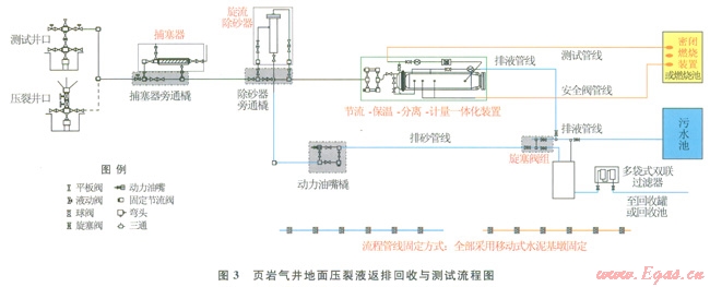 摘 要:試油測試作業(yè)是油氣田開發(fā)中不可缺少的環(huán)節(jié),環(huán)保試油是一種全新的發(fā)展理念,為此,結(jié)合川渝地區(qū)油氣田的實際情況,針對性地提出了4種試油安全環(huán)保處理的技術方案:①采用移動式固定基墩替代傳統(tǒng)的打水泥基墩坑來固定放噴測試管線,清潔環(huán)保,作業(yè)效率高;②使用密閉燃燒裝置在井場內(nèi)燃燒放噴天然氣體,可大大減少征地修建燃燒池的費用以及對耕地的破壞;③優(yōu)化非常規(guī)氣井放噴排液回收流程,對返排液進行精細化過濾回收處理,處理后的液體可直接作為下層或下一口井的壓裂基液,解決了廢液排放帶來的環(huán)境污染和水資源浪費等問題;④運用井筒排出液自動實時除硫技術,在全密閉環(huán)境下實時除硫、消泡與中和殘酸,實現(xiàn)含硫井排出液在污水池內(nèi)的安全排放,保護了環(huán)境。上述系列技術已經(jīng)在四川盆地高含硫氣井和頁巖氣等非常規(guī)氣井中開展了廣泛的應用,效果較佳,為常規(guī)的試油測試工藝注入了新鮮的“血液”。