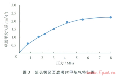 地質(zhì)條件下,烴源巖生成的烴類先滿足自身的吸附、溶解等殘留需要后,才能以游離方式存在[15-20]。結(jié)合地質(zhì)演化過程可以判斷,在熱演化初期,埋藏較淺,此時(shí)只有少量油氣生成,液態(tài)油會(huì)賦存于頁巖孔縫中,而氣體會(huì)“就近”吸附于有機(jī)質(zhì)表面及微孔中。結(jié)合長7段頁巖的勘探實(shí)際情況,很大一部分頁巖僅處于低成熟  未成熟階段(R。<0.8),其頁巖氣含量仍能達(dá)到l業(yè)氣流(1m3t)標(biāo)準(zhǔn),主要原因就是頁巖的吸附作用使得生成的氣體得以最大限度地保存。