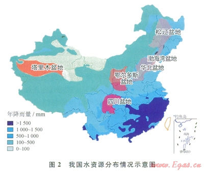 此外,在我國頁巖氣富集的山區(qū),地表條件較差,水資源匱乏,大規(guī)模水力壓裂造成的環(huán)境污染和資源浪費等問題也不容忽視,以美國2011年頁巖氣開發(fā)數(shù)據為例,根據美國能源部統(tǒng)計,每一口頁巖氣鉆井平均用水量高達1.5×104m3[7]。預計全年頁巖氣水平井鉆井數(shù)為8000口,則一年的用水量至少為l.2×l08m3。我國是一個干旱缺水嚴重的國家,人均年可利用淡水資源量儀為900m3,不到美國的l/5,并且分布極其不均,統(tǒng)計到20世紀末,全國600多座城市中,已有400多個城市存在供水不足問題,其中比較嚴重的缺水城市達ll0個,全國城市缺水總量為60×l08m3。如圖2所示,我國頁巖氣田的分布與缺水地區(qū)的分布重合較多。在水量相對充裕的長江流域,只在四川[8]和江漢盆地發(fā)現(xiàn)了頁巖氣,而在西北、華北地區(qū)[9],頁巖氣儲量豐富,水資源卻相當緊張[10]。與此同時,35%的壓裂液將返排至地表,若處理不當將給環(huán)境帶來巨大的污染,同時也增加了開發(fā)成本[11]。因此,我國頁巖氣資源的高效可持續(xù)開發(fā),不能單純借鑒北美大規(guī)模水力壓裂的生產模式,需要大力發(fā)展高效環(huán)保、低水量消耗的壓裂液體系以及配套的壓裂設備和技術方法。