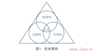 信息的安全風(fēng)險(xiǎn)主要來自于信息的保密性、完整性和可用性。在企業(yè)中,信息可能會(huì)通過口頭、網(wǎng)絡(luò)、打印機(jī)、復(fù)印機(jī)、存儲設(shè)備等途徑不經(jīng)意地泄露。要避免重要信息的泄露,在信息的傳遞和保管過程中要把好關(guān);然后,還要防止信息被誤變更或被惡意變更,做到保護(hù)信息的完整性;最后,要做好信息源頭的安全保障,即要保障信息處理設(shè)備和信息傳遞渠道的高可用性。制定清晰的信息處理流程,建立滿足服務(wù)的完善運(yùn)維保障,以及設(shè)法保持業(yè)務(wù)連續(xù)性管理都是保證信息高可用的重要措施。正是信息的這3個(gè)屬性結(jié)合才形成了信息的安全性,如圖1所示: