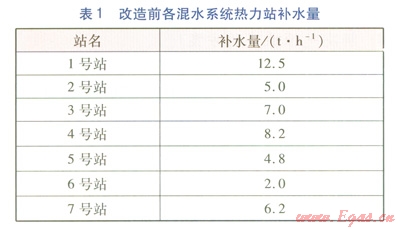 以青島市敦化路區(qū)域供熱蒸汽改高溫水工程為例,本區(qū)域內(nèi)原有的13座用戶(hù)熱力站以華電發(fā)電廠的蒸汽為熱源,改造后新建l座高溫水首站,13座用戶(hù)熱力站以首站高溫水為熱源,其中7座用戶(hù)熱力站采用混水系統(tǒng)供熱(如圖1所示),6座用戶(hù)熱力站采用間接換熱系統(tǒng)供熱。該工程改造完成后,供暖面積將達(dá)到192.6×104m2。在供熱規(guī)模不變的情況下,與原供熱方式相比,一級(jí)熱力管網(wǎng)(高溫水管網(wǎng)比蒸汽管網(wǎng)熱損失率大幅度降低)改造后節(jié)約標(biāo)準(zhǔn)煤量為2125.9t/a,凝結(jié)水回收節(jié)約標(biāo)準(zhǔn)煤量為1497.4t/a,新建高溫水首站增加電力能耗量折合節(jié)約標(biāo)準(zhǔn)煤量為-44.7t/a,綜合計(jì)算這3項(xiàng)得出每年降低煤耗折合標(biāo)準(zhǔn)煤量為3578.6t/a,可減少二氧化硫排放量為74t/a,減少煙塵排放量為18t/a,減少氮氧化物排放量為37t/a,減少二氧化碳排放量為9198t/a。該項(xiàng)目的實(shí)施具有良好的節(jié)能效益和環(huán)境效益,符合國(guó)家環(huán)保政策,通過(guò)該項(xiàng)目的實(shí)施可全面提升企業(yè)的能源綜合利用率,實(shí)現(xiàn)環(huán)境效益、社會(huì)效益和企業(yè)經(jīng)濟(jì)效益的協(xié)調(diào)統(tǒng)一。
