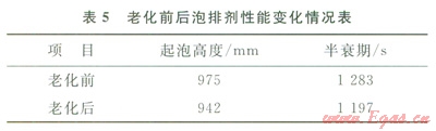 將10g泡排劑放入反應(yīng)釜中老化24h,用蒸餾水配制體積分?jǐn)?shù)為0.3%的液體,測(cè)量起泡高度和半衰期,老化前后泡排劑性能變化情況如表5所示。