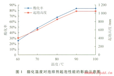2.1.2酯化溫度對(duì)泡排劑起泡性能的影響