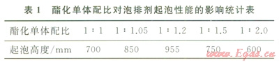 2.1.1酯化原料配比對(duì)泡排劑起泡性能的影響