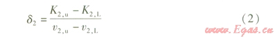 v1一定的條件下,總換熱系數(shù)絕對變化率d2的計算式為: