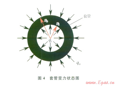 顯然,應(yīng)力分布應(yīng)當(dāng)是軸對稱的。套管受力邊界條件為: