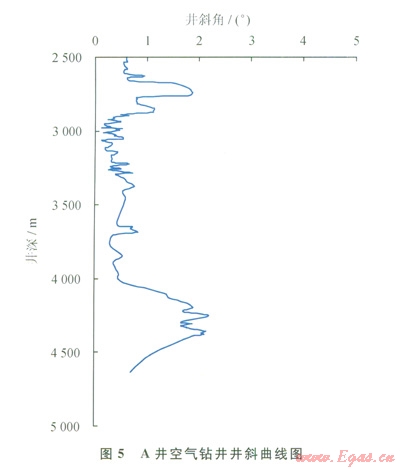 4)通過在A井空氣鉆井現(xiàn)場試驗(yàn),提高機(jī)械鉆速3~5倍,節(jié)省鉆井時(shí)間119d,井斜滿足工程要求,取得良好應(yīng)用效果。