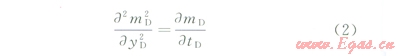 由于探測(cè)邊界yfD隨時(shí)間而變化,直接求解(2)~(4)并非易事,這里采用近似求解方法。首先對(duì)控制方程(2)兩側(cè)先后關(guān)于空間變量(yD)和時(shí)間變量(tD)進(jìn)行積分,利用邊界條件將偏微分方程式(2)轉(zhuǎn)化為探測(cè)邊界內(nèi)物質(zhì)平衡方程: