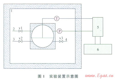 1為實(shí)驗(yàn)裝置示意圖,實(shí)驗(yàn)裝置主要部分包括可視化高壓反應(yīng)釜、恒溫空氣浴、真空系統(tǒng)、溫度傳感器、壓力傳感器、數(shù)據(jù)采集系統(tǒng)??梢暬邏悍磻?yīng)釜為反應(yīng)系統(tǒng)的核心部分,釜體材料為不銹鋼,兩端帶有玻璃視窗,可觀察水合物的靜態(tài)生成情況;恒溫空氣浴由制冷機(jī)提供冷量,可控溫度范圍為-2040℃,穩(wěn)定運(yùn)行時(shí)控溫精度為±0.1℃;真空系統(tǒng)采用2XZ-0.5型旋片真空泵(浙江黃巖黎明實(shí)業(yè)有限公司)來(lái)實(shí)現(xiàn),可以將反應(yīng)釜抽真空至0.06Pa;溫度傳感器為Ptl00四線制鉑電阻溫度傳感器(北京賽億凌科技有限公司生產(chǎn)),精度為±0.1℃,置于反應(yīng)釜內(nèi)兩相分界面處,用來(lái)測(cè)量水合反應(yīng)過(guò)程中的溫度;壓力傳感器(上海天沐自動(dòng)化儀表有限公司生產(chǎn))量程為01MPa,測(cè)量壓力精度為0.05%;數(shù)據(jù)采集系統(tǒng)通過(guò)安捷倫數(shù)據(jù)采集儀Agilent 34970A來(lái)實(shí)現(xiàn)。