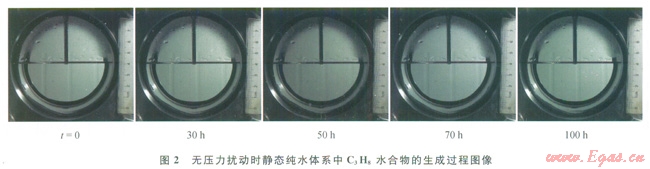 關(guān)鍵詞丙烷水合物  生成過(guò)程  靜態(tài)水合物  生成量  生成速率  壓力擾動(dòng)  可視化實(shí)驗(yàn)