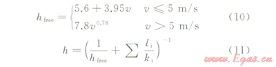 混凝土結(jié)構(gòu)在澆筑期附有模板,筆者采用等效熱對流系數(shù)的方法來考慮模板對溫度場的影響,凝土的等效熱對流系數(shù)采用下式計算[16]