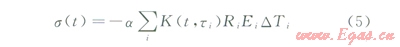 (5)對應(yīng)于第i時間段,a為混凝土熱膨脹系數(shù),1K(ti,t)為應(yīng)力松弛系數(shù);Ri為約束系數(shù),其值與構(gòu)件長高比及混凝土彈性模量比有關(guān);Ei為彈性模量,MPa;DTi為混凝土的內(nèi)外溫差,。
