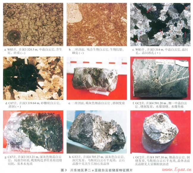 1)川東地區(qū)茅二a亞段發(fā)育一套層狀、硅質(zhì)白云巖儲(chǔ)層,厚度可達(dá)30m,儲(chǔ)層溶蝕孔洞縫發(fā)育,儲(chǔ)集性能好。