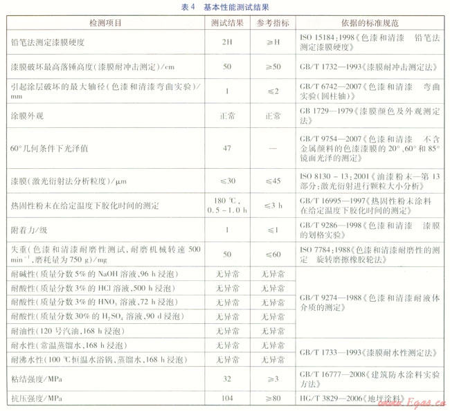 內(nèi)涂層基本性能測試結(jié)果見表4。由表4可知,涂層各項基本性能符合要求。