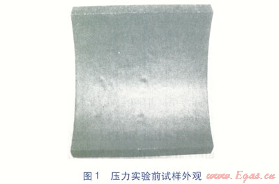 壓力實驗后試樣外觀見圖2。比較圖1、2可知,壓力實驗前后涂層顏色未出現(xiàn)明顯變化,涂層表面光滑平整,無起泡、針孔、裂紋等現(xiàn)象,也未腫脹及變軟。涂層與基材之間未脫落,附著情況良好。