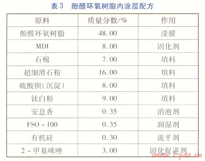 ①內(nèi)涂層配方