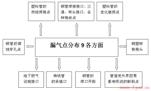 燃?xì)夤艿劳度脒\(yùn)行后,因腐蝕、管道接口、密封材料老化、安裝質(zhì)量不良、機(jī)械振動(dòng)、管道的熱脹冷縮等原因,產(chǎn)生穿孔、裂縫或斷裂造成燃?xì)庑孤?。燃?xì)庑孤┮院?,?huì)沿著一定的通道傳播到地面或建構(gòu)筑物內(nèi),當(dāng)泄漏的燃?xì)膺_(dá)到爆炸極限,遇火源則產(chǎn)生火災(zāi)、爆炸和一系列次生災(zāi)害,導(dǎo)致嚴(yán)重的人員傷亡和財(cái)產(chǎn)損失。