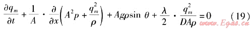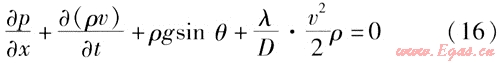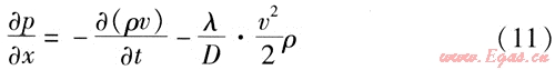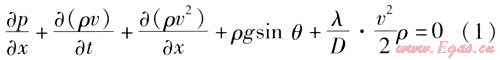如果單位時間內(nèi)輸氣量的波動較大,就需要考慮動量方程中的慣性項,上述式(7)、(8)就變成如下形式: