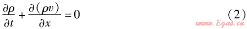 燃?xì)庠诠艿乐械牧鲃邮遣环€(wěn)定流動,并且可看成一元流動,流體的壓力、密度、速度等參數(shù)是時間和管道長度的函數(shù)。以管道軸線方向?yàn)楦曜鴺?biāo),垂直于管道軸線為z坐標(biāo),可根據(jù)流體力學(xué)知識建立燃?xì)庠诠艿纼?nèi)流動的3個方程,具體如下[1]: