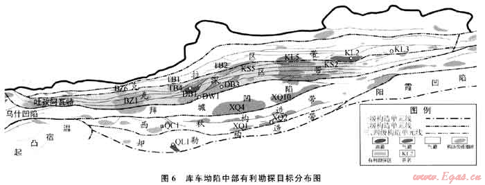 2) 提出庫車坳陷中部油氣勘探的重點是克深區(qū)帶,DB1氣田、KS5、KS2氣藏是今后滾動勘探研究的關鍵,基本確定DB1-KS2氣藏之間整體含氣,西部吐孜阿瓦特地區(qū)是克深區(qū)帶黑油勘探的最有利區(qū)。西秋構造帶、拜城凹陷南緣重點是落實低幅度構造圈閉,優(yōu)選有利勘探日標上鉆,一旦發(fā)現(xiàn)低幅度構造圈閉氣藏將為該區(qū)帶來巨大的勘探潛力。