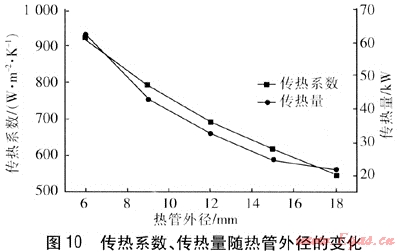 從以上分析可知,在換熱器其他結(jié)構(gòu)尺寸及其他條件不變的情況下,減小熱管外徑能夠增大換熱器的傳熱量,并能滿足較小設(shè)計尺寸的要求,但要考慮熱管的強(qiáng)度要求以及連續(xù)流動極限的限制。