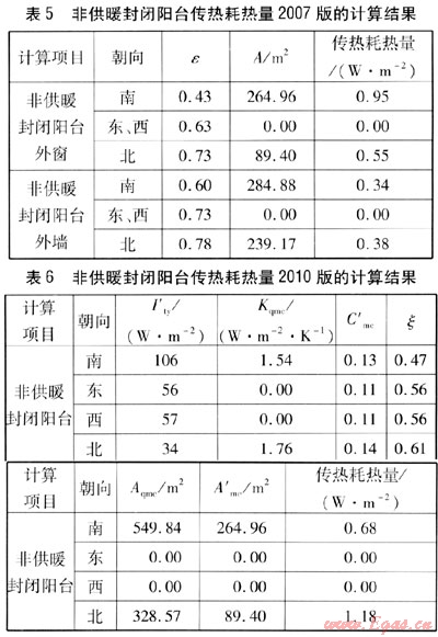 由式(2)與式(7)的比較可知:式(7)中tn取18℃;2010版中太陽輻射修正系數(shù)由較精確的計算得出;2010版中非供暖封閉陽臺的傳熱耗熱量不再像2007版那樣將墻與窗(門)分開計算。