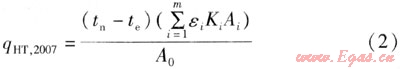 2007版中單位建筑面積通過圍護(hù)結(jié)構(gòu)的傳熱耗熱量qHT,2007,的計算式為: