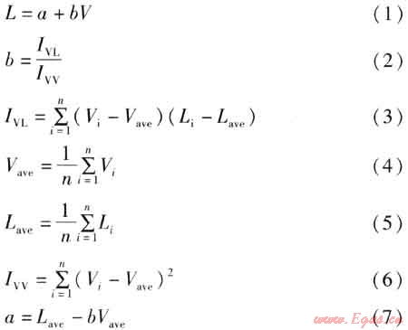 從20世紀末開始,我國天然氣發(fā)展迅速,不僅建設了數(shù)條輸氣管道,配氣管道也得到了發(fā)展,統(tǒng)計資料也日趨完善。根據(jù)10余年統(tǒng)計資料,采用回歸分析法,建立配氣管道長度與年燃氣消費總量之間的關系成為可能。1996—2008年我國配氣管道長度與年燃氣消費總量的統(tǒng)計數(shù)據(jù)見表1[1],V為各年燃氣消費總量,單位為m3/a,L為各年配氣管道的長度,單位為km。由表1數(shù)據(jù)建立配氣管道長度與年燃氣消費總量的關系曲線,見圖1。由圖1可知,配氣管道長度與年燃氣消費總量基本成線性關系,因此可采用回歸分析法建立二者的函數(shù)關系。