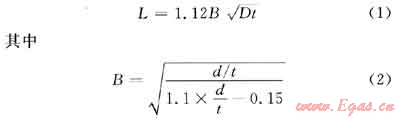 當腐蝕深度比大于管道壁厚的10%且小于80%的鄰近腐蝕區(qū)域,腐蝕區(qū)的軸向長度不得大于由下式計算出的距離: