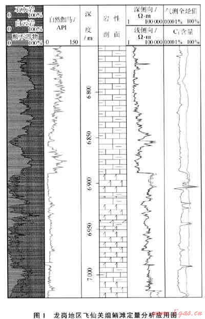 在四川盆地龍崗地區(qū)飛仙關(guān)組鉆進中,應(yīng)用碳酸鹽巖定量分析技術(shù)對龍崗地區(qū)3口井進行了采樣分析。從其中一口井的分析可見(圖1),在6750~6890m儲層段,酸不溶物、石灰質(zhì)含量高,與上部泥灰?guī)r的自然伽馬高值、雙側(cè)向低值對應(yīng)較好;在6890~6992m儲層段,白云質(zhì)含量出現(xiàn)至高值,與鮞灘白云巖的自然伽馬低值、雙側(cè)向高值顯示吻合較好睜…,為判斷飛仙關(guān)組鮞灘儲層提供了可靠依據(jù)。但酸不溶物含量偏高,與鮞灘儲層物性相關(guān)性稍差。
