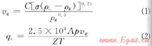 IPM用于計(jì)算臨界攜液流量的公式為: