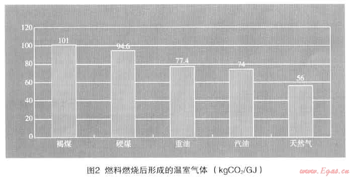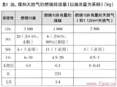 ② 表2中,日本介紹了各種燃料考慮燃料效率后的排放量。美國資料也認為天然氣比其他燃料可少排放45%的C02,如采用高效燃燒技術(shù)甚至可能減少70%的C02。但效率應(yīng)采取不同使用設(shè)備的平均綜合效率,這又是一個重要的研究課題。