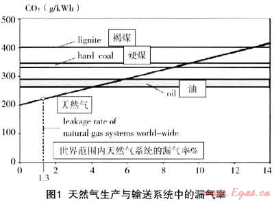 若天然氣的漏損率達到4%~6%其排放量相當于油,若達到8%~13%則排放量相當于不同煤種。