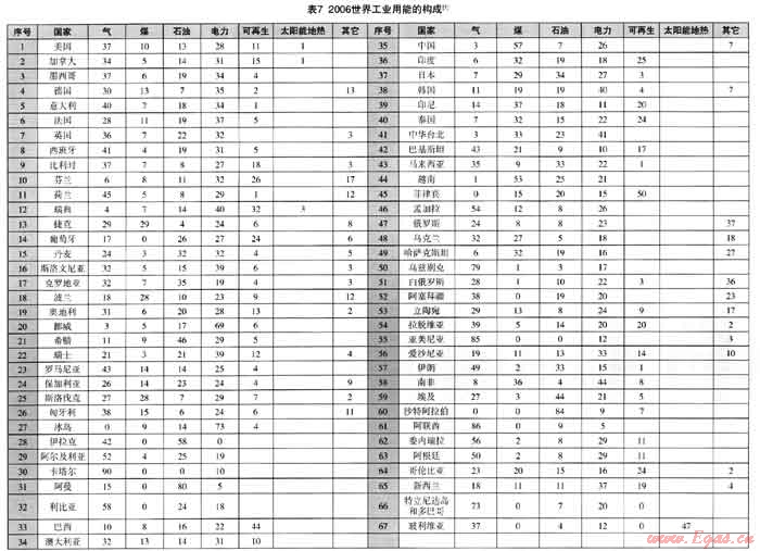 當今我國研究節(jié)能、減排的許多文獻中均常出現(xiàn)以我國單位GDP的能耗與國外特別是發(fā)達國家的情況相比較,得出的結(jié)論是“差距很大,因而可挖的潛力也很大”,克服差距的手段是“科技進步”,采用的方法是關(guān)停產(chǎn)能落后的企業(yè)。,實際上節(jié)能減排不僅與科技進步有關(guān),也與一個國家的能源構(gòu)成有關(guān)。不同能源構(gòu)成國家的節(jié)能減排在宏觀上存在許多不可比性,應(yīng)有實事求是的分析。為此,本文根據(jù)國際燃氣聯(lián)盟多年公布的研究資料,做一些分析探討,從本世紀以來世界的能源構(gòu)成開始。