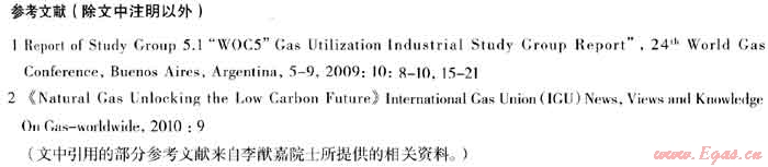 (5) 本文所引用的資料均是本世紀以來值得研究的數(shù)據(jù),從中可看出世界各國對本世紀能源構(gòu)成的共同發(fā)展方向。在化石燃料中,由于天然氣的碳/氫比較小,是唯一能滿足節(jié)能、減排要求的燃料,常稱為環(huán)境友好燃料。在世界各國的能源構(gòu)成中,我國是所占比重最低的國家之一,改革開放以來的變化也很小。增加1000億m3的天然氣,相當于1.2億t的標準煤,按表2可算出燃料效率提高后的節(jié)能量和C02減排量。當今世界年消耗天然氣約2.48億m3,相當近29億t標煤,在世界能源、減排中有舉足輕重的作用,到2030年估計全球天然氣消費料將達4.5億m3-5億m3。國際研究表明,加上可再生能源,新能源和其它減排措施后,全球C02的濃度可能降低到1990年水平的要求。本世界以來天然氣已形成了較大的國際市場,發(fā)展天然氣已成為各國應(yīng)對氣候變暖的首選方案。我國在國家“十二五”規(guī)劃綱要中已有反映。