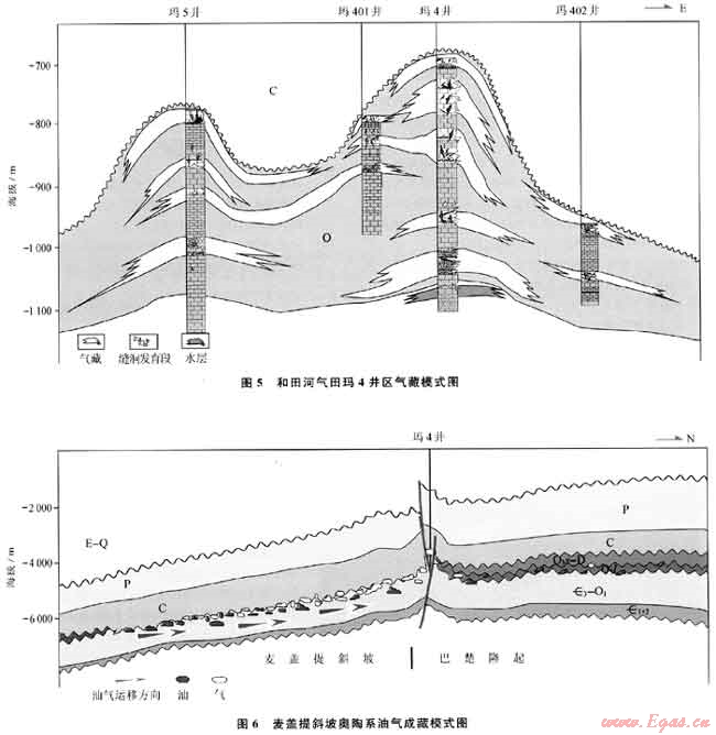 2) 和田河氣田的氣藏模式分析表明非構(gòu)造油氣藏是該區(qū)油氣勘探的主要對(duì)象,低部位的麥蓋提斜坡奧陶系風(fēng)化殼巖溶儲(chǔ)層發(fā)育,是尋找大面積縫洞型油氣藏勘探的有利方向。