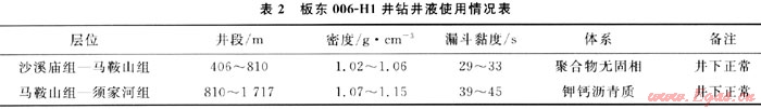 該井鉆井液使用情況如表2所示。