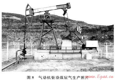 首次在沁南示范工程采用氣動(dòng)機(jī)作為煤層氣抽采的動(dòng)力設(shè)備,利用氣井自產(chǎn)氣為燃料,既減少了動(dòng)力成本,又可以避免繁瑣的配套工程建設(shè)。氣動(dòng)機(jī)的應(yīng)用,極大地簡(jiǎn)化了煤層氣井生產(chǎn)的建設(shè)工序,加快了投產(chǎn)進(jìn)程,具有較高的靈活性和方便性。隨著氣動(dòng)機(jī)設(shè)備的不斷更新完善,在煤層氣生產(chǎn)中的應(yīng)用也將逐步上升(圖8)。