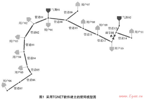 本文所采用的TGNET軟件是英國ESI能源集團開發(fā)出品的業(yè)界領先的Pipeline Studio軟件,是經過使用證明的、歷史悠久的氣體管道離線模擬軟件,能夠對輸氣管道中的單相流進行穩(wěn)態(tài)模擬和動態(tài)模擬;可以模擬簡單的單管輸送模型,也可以模擬包括多個氣源和用戶,多個復雜的環(huán)狀管網、多臺壓縮機和冷卻器以及其他影響管網操作和運行參數(shù)的設備閥門等在內的大型區(qū)域性集輸系統(tǒng),已經在全世界得到了廣泛的應用。