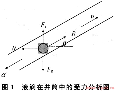 利用牛頓定律建立液滴運動方程。液滴在井筒中的受力只有4個:重力、浮力、曳力和阻力。其受力分析見圖1。