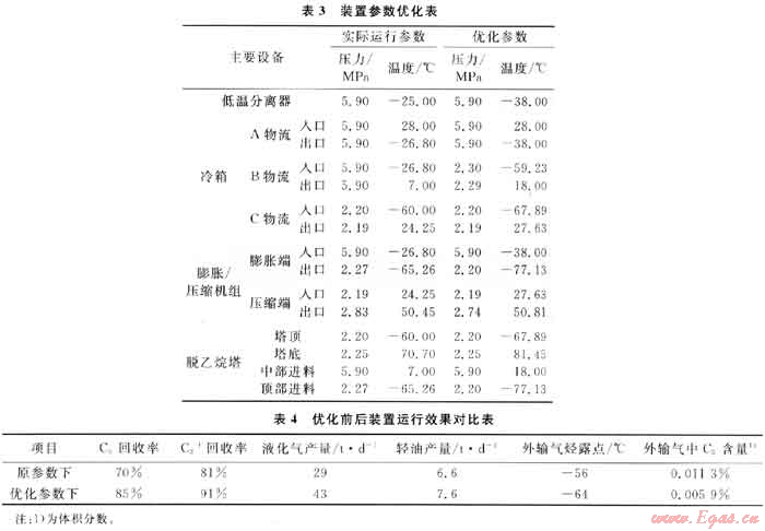 2) 在優(yōu)化條件下C3及C3+回收率分別得到大幅提高,C3回收率由原來(lái)的70%提高到現(xiàn)在的85%;C3+回收率也由原來(lái)的81%提高到現(xiàn)在的91%。