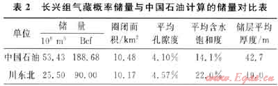 本次計(jì)算的概率儲(chǔ)量分布的P50和中國(guó)石油天然氣股份有限公司(以下簡(jiǎn)稱中國(guó)石油)的計(jì)算結(jié)果差別較大,其主要的原因是本次所采用的孔隙度截止值與中國(guó)石油所采用的有較大差別,另外本次計(jì)算使用的圈閉面積也小于中國(guó)石油采用的圈閉面積。對(duì)于P50,采用了3%的孔隙度下限值,而中國(guó)石油原來(lái)采用的是2%。使用3%的截止值時(shí),各井平均孔隙度會(huì)略微偏高,但平均產(chǎn)層厚度卻顯著低于采用2%孔隙度截止值時(shí)的厚度(表2)。