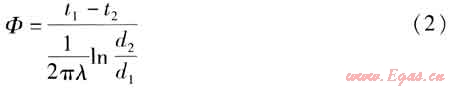 蒸汽輸送過程中,單位長度管道的熱損失可根據(jù)圓筒體的導熱微分方程[4]計算得到。忽略蒸汽和管壁的熱阻,可得下式: