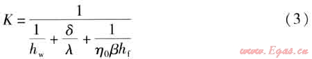 計(jì)算煙氣與水之間的傳熱系數(shù)K,計(jì)算公式為: