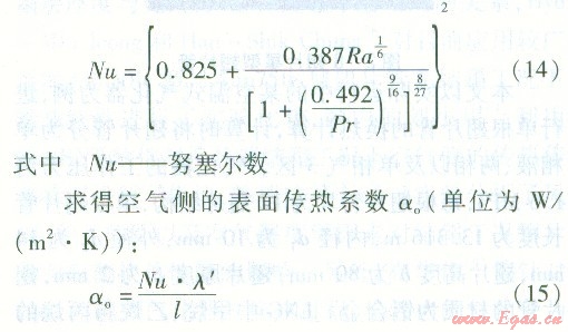 由于翅片管為立式安裝,故此處自然對流換熱計算選用豎壁準則關(guān)聯(lián)式: