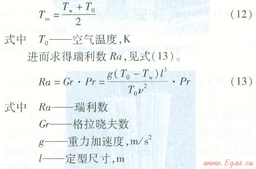 首先由空氣的定性溫度Tm確定其物性參數(shù),Tm計算公式為: