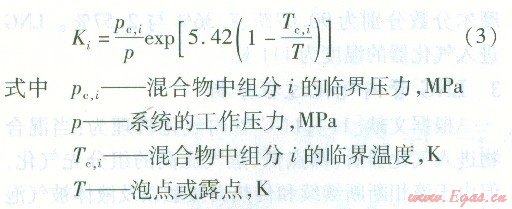 目前對烴類通常采用以下的經(jīng)驗關(guān)聯(lián)式來估計Κi的近似值: