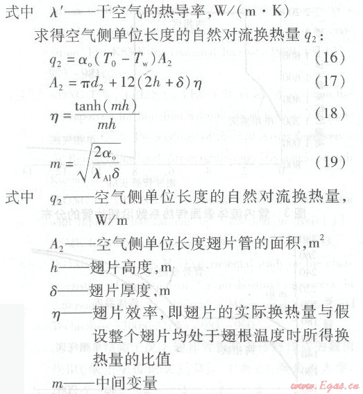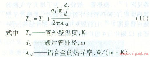 利用通過圓筒壁的導(dǎo)熱公式,計算沒有翅片部分管外壁的溫度ΤW,此溫度即為翅片的根部溫度。
