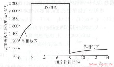 ①經(jīng)計算得翅片管的總長度為13.45 m,與翅片管的實際長度l3.316 m接近。其中單相液區(qū)最短,只占總長度的14%,兩相區(qū)占45%,單相氣區(qū)占41%。